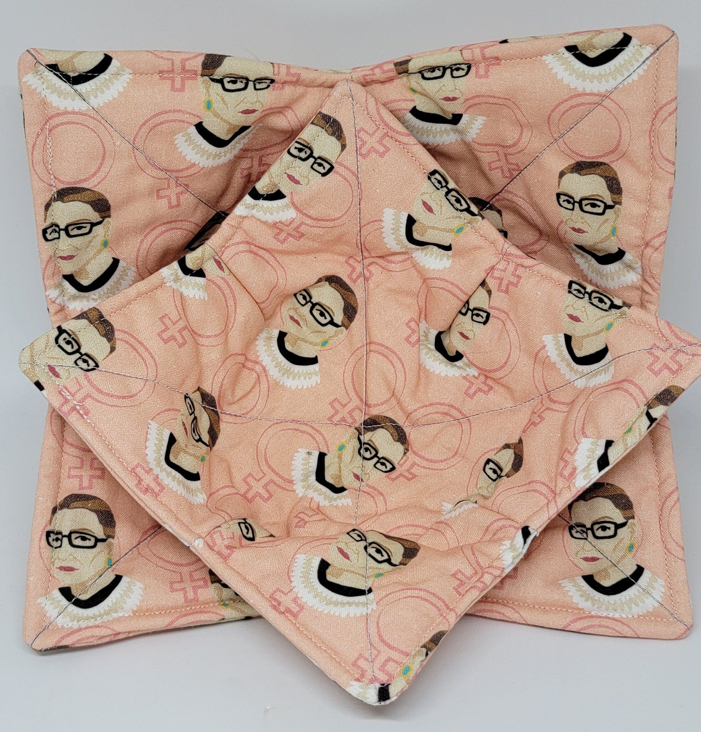 Microwavable Bowl Cozy with Ruth Bader Ginsburg fabric, excellent gift for all those who loved and miss Ruth Bader Ginsburg being on the Supreme Court.